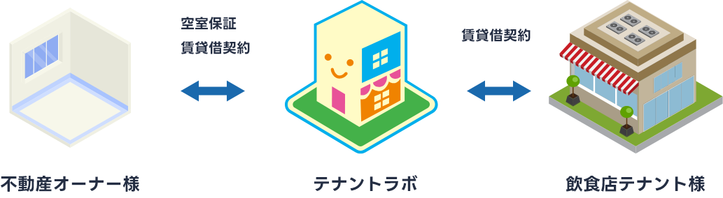当社のマスターリースでは、前テナント様から当社が直接内装設備を買取り、オーナー様への原状回復義務を弊社が負う事で、所有者様、前借主様、そして次のテナント様皆さまにとって最善のご提案が可能となります。